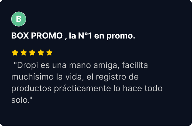 Con Dropi, puedes importar productos rápidamente, sincronizar el inventario automáticamente, hacer pedidos masivos con un clic, traducir descripciones de productos, importar reseñas e incluso crear Landing Pages optimizadas para aumentar tus ventas.